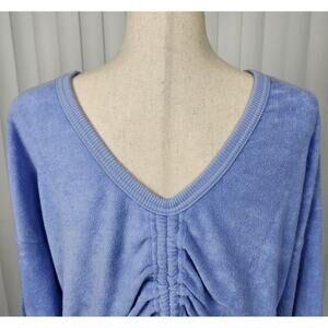 Aerie Cinched Terry Cloth Sweatshirt Relaxed V-back Blue Women's Size Medium New