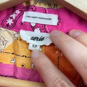 Aerie Colorful Paisley Summer Tropical Print Button Up Short Sleeve Top Small