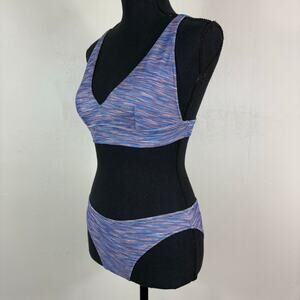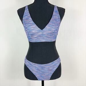 Aerie Cool Tone Marled Blue Top and Bottom Two Piece Swimsuit Matching Bikini