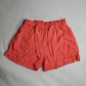 Excellent condition. Pink/Red color. Paperbag style waist. Elastic waist. Tie waist detail. Cuffed hem. Two pockets. Relaxed fit. Very soft and lightweight. Great for spring & summer!