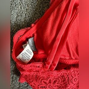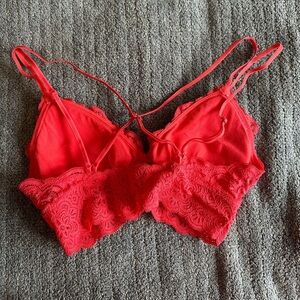Aerie Coral/Pink Lace Bralette size Small. Adjustable straps and removable pads. 91% nylon, 9% elastane.