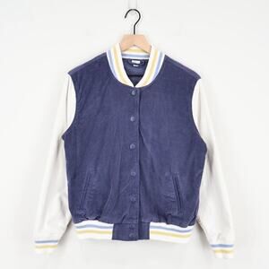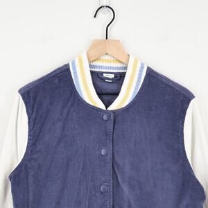 Aerie Corduroy Varsity Snap Button Jacket Blue Size Small