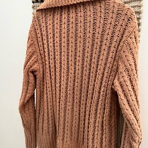 Stay warm and stylish with this cozy tan sweater. Perfect for any fall oversized for comfy fit. Tagged size XS.