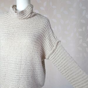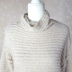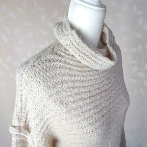 Aerie Cozy Fuzzy Open Knit Cowl Neck Sweater Oversized Cream Small