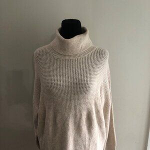 Aerie Cozy Oversized Beige Turtleneck Sweater Casual & Warm Size Medium NWT