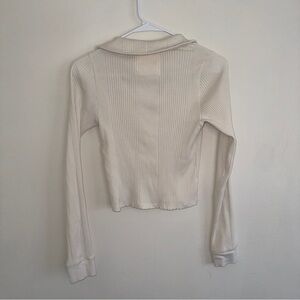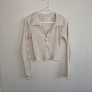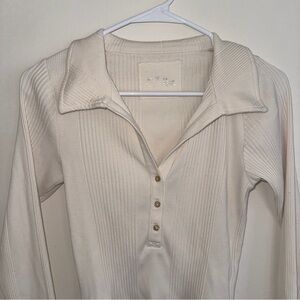 Aerie Cream Beige White Ribbed Longsleeve Collar Medium