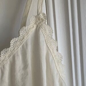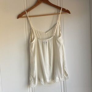 Elegant cream camisole. Features delicate lace trim. Perfect for layering. Feel free to message with questions. Thanks!