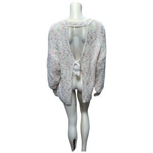 Aerie Cream Multi-Colored Open Back Tie Sweater (Medium)