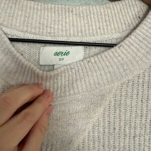 Soft cream ribbed knit sweater. Ideal for layering and casual outings.