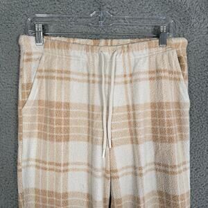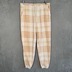 Aerie Cream & Tan Plaid Soft Cozy Pull On Jogger Lounge Pants Size Medium