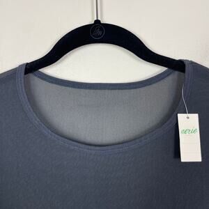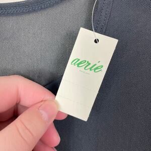 Aerie Crew Neck Lettuce Trim Long Sleeve Cropped Magic Mesh Layering Top