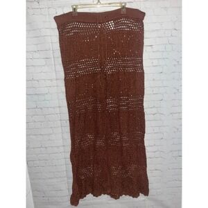 Aerie Crochet Knit Pants Brown Drawstring Waist Flare Leg Boho Festival XXL
