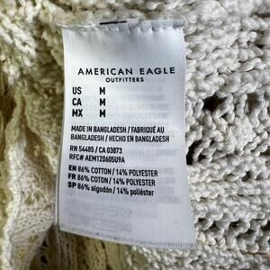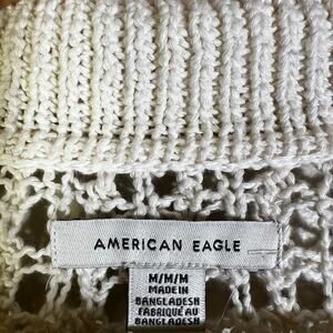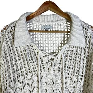 Aerie Crochet Knit Sweater Womens M Cream Lace Up V-Neck Boho Coastal Beachy