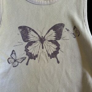 Light blue Aerie Butterfly print Tank Gathered sides Size Small