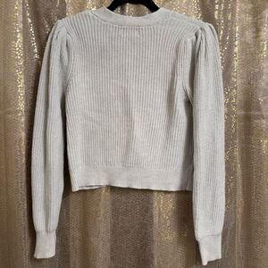 Aerie Cropped Cardigan Cream Beige Chunky Knit Balloon Sleeves Medium