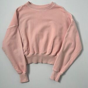 Aerie Cropped Pullover Sweatshirt Women's Pink Crew Neck Ribbed Casual Small