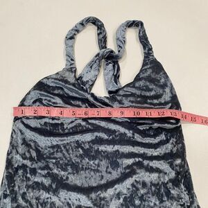 Aerie crushed velvet bodysuit in a dark gray/charcoal color. Features a knotted front detail, adjustable straps, and soft stretch velvet fabric. Perfect for layering with jeans, skirts, or worn as a statement piece for a night out. Size Small.
