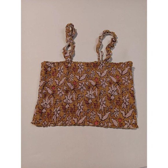 Cute Little Aerie Floral Fall Colored Boho Look Cropped Tank Top with ruffle strappy Sleeves Size Large -- Perfect for layering!