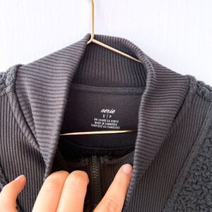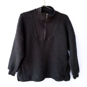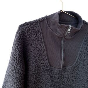 Aerie Dark Gray Long Sleeve Sherpa Pullover Over Quarter Zip Sweatshirt Small