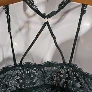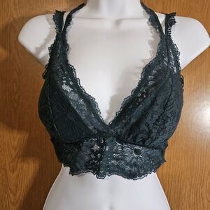 Chic lace bralette in deep green. Offers comfort and elegance. excellent condition so cute and comfortable women's size medium