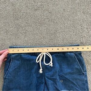 Aerie Denim Frayed Drawstring Shorts Size Small