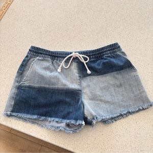 Aerie Denim Jean Shorts Pull On Patchwork Small Summer Elastic Waist Drawstring