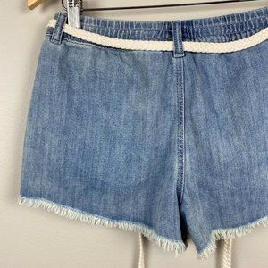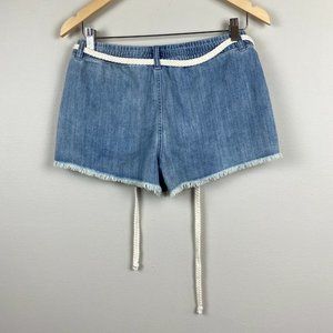 Aerie Denim Shorts S Blue Jean Belted Cut Off Fray Hem Distressed Women's Small NWOT