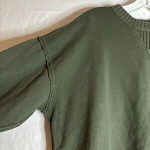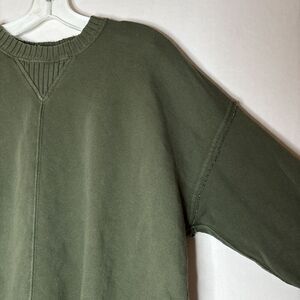 Aerie Down To Earth Crewneck Distressed Sweatshirt Women's Size XS Olive Green