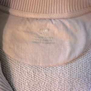 Like new condition, no visible signs of wear. Lilac in color, ribbed quarter zip. Pockets. Medium. First picture represents actually color in person.