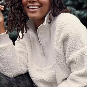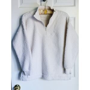 Aerie Dream Sherpa Quarter Zip Oversized Pullover XS Cream Cozy Lounge Fall