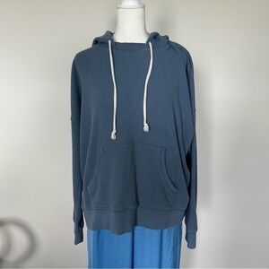 Aerie Dusty Blue Waffle Knit Hoodie Pullover Sweatshirt Size M Cozy Soft Stretch