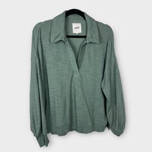 Aerie Endless Summer Polo Sweater Green Olive Pop Over Oversized Medium