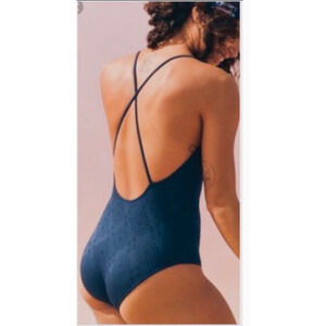 Aerie Eyelet Keyhole One Piece Swimsuit Navy Size M