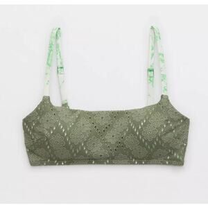 Aerie Eyelet Straight Scoop Bikini Top Olive Fun Swimsuit Beachy Swimming Sz M