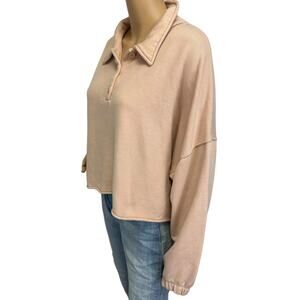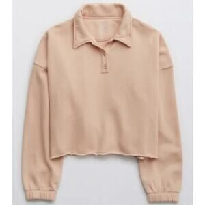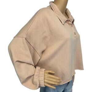 Aerie Fleece Of Mind Cropped Polo Sweatshirt Pink Collared Oversized Size L