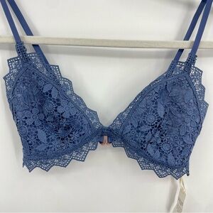 Aerie Floral Lace Triangle Bralette Periwinkle Blue Gold Side Ring Size S