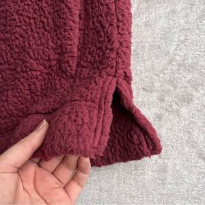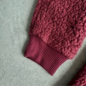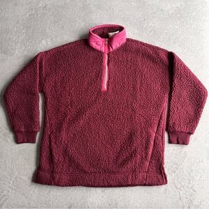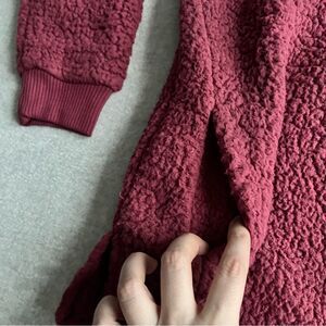 Aerie by American Eagle Outfitters Fluffy Sherpa Colorblock Quarter Zip Pullover. Burgundy red and hot magenta pink. Front pockets. Small side slits along bottom hem. New with tags. An oversized XS, can fit a small easily!