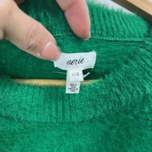 Aerie Flurry Crew Neck Sweater Kelly Green Plush Fuzzy size large.NWT