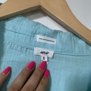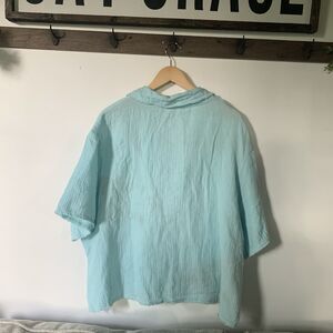Aerie Gauze Short Sleeve Crop Button Up Shirt Blue Size XL Lagenlook Beach