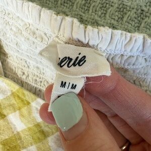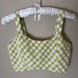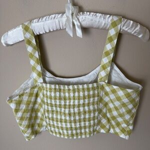 Aerie women’s cropped tank top. Size medium. White base with light green gingham. Smocked detailing in the back and adjustable straps. Fully lined bodice. In excellent condition.