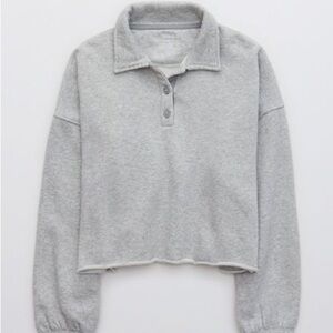 Cozy gray collared sweatshirt. Perfect for casual wear.
