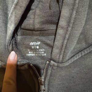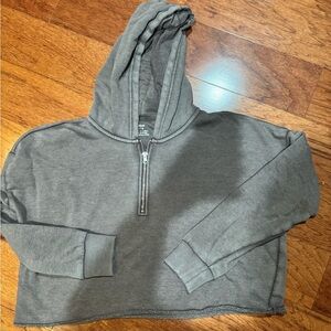 Aerie Gray Cropped Hoodie with Half-Zip M
