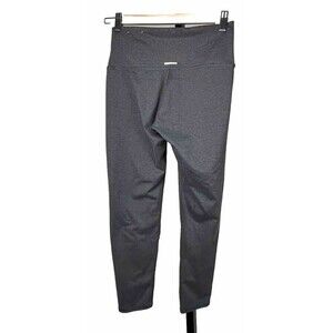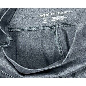 Aerie high-waisted gray leggings in women’s size Small Short. These pull-on leggings feature a wide waistband, hidden stash pocket, and tonal “Chill. Play. Move.” logo on back. Made with soft, stretchy polyester-elastane blend. Mid-crop fit (22" inseam), perfect for workouts, lounging, or casual athleisure.
