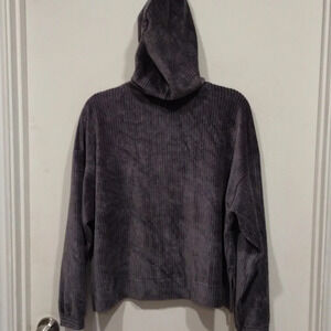 Aerie Gray Ribbed Velour Groove On Cropped Lounge Hoodie Sz M-Casual Slouchy