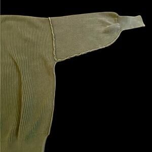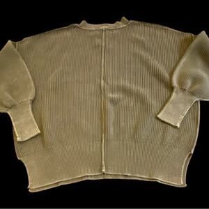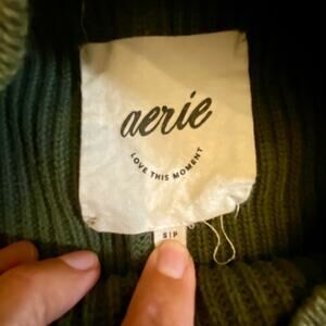 Well loved olive green knit sweater by Aerie. Soft and stylish. Please note light bleach stain on front. Great for at home or working out.