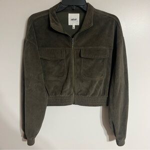 Women’s Aerie green cropped ribbed corduroy full zip jacket