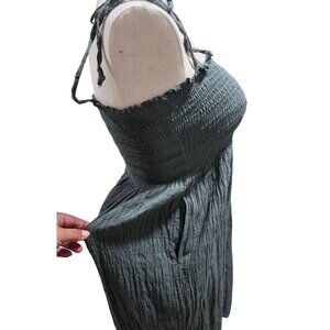 Aerie Green Smocked Midi Dress With Tie Straps & Button Front