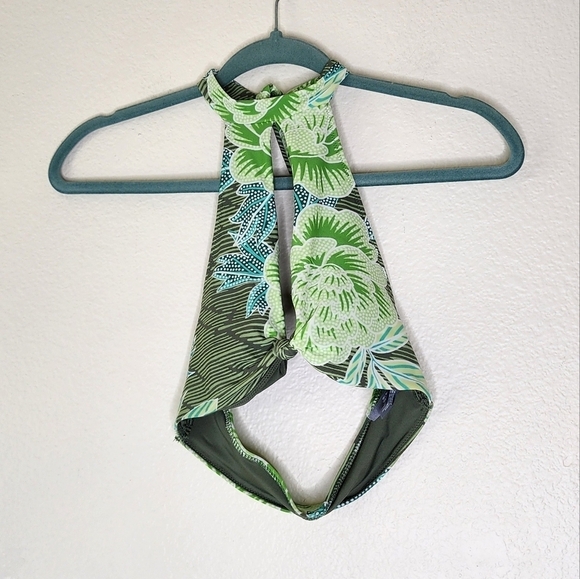 Aerie Green Tropical Halter Keyhole Swim Top S