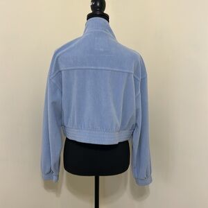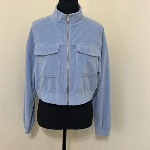 Aerie Groove On Powder Blue Velour Ribbed Zip Jacket Med.