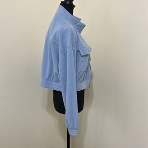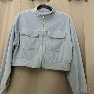 Aerie Groove On Powder Blue Velour Ribbed Cropped Zip Jacket Med